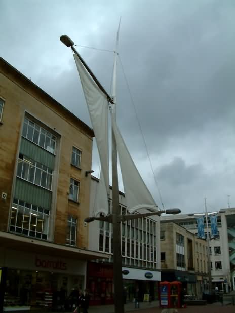 商业街中心,有4根象征航行的帆杆 |