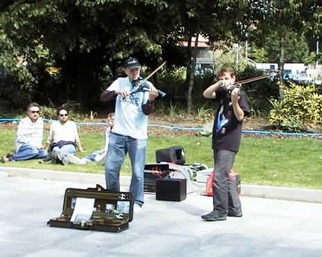 这二位的琴才叫拉绝了。原来他们就出过唱片。今天,他们在这里也卖唱片,